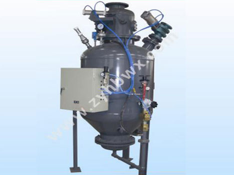 當泵內物料輸送完畢,壓力下降到管道阻力時,指示燈發出信號,通氣延續一定時間,壓縮空氣清掃管路,然后進氣閥關閉,間隔一定時間,關閉出料閥,打開進料閥,完成一次輸送循環。