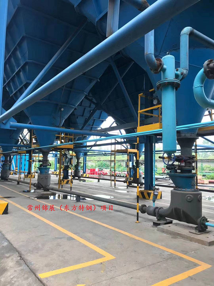 系統(tǒng)設(shè)計時,在AV輸送泵上部進(jìn)料口處設(shè)置1只氣動進(jìn)料閥(旋轉(zhuǎn)閥),該進(jìn)料閥采用DN200氣動旋轉(zhuǎn)閥。該閥具有密封性能好、耐磨性強(qiáng)、耐高溫、開關(guān)無卡瑟現(xiàn)象、無卡灰或積灰現(xiàn)象、使用壽命長等特點。